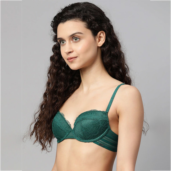 Green Floral Self Design Underwired Lightly Padded Balconette Bra